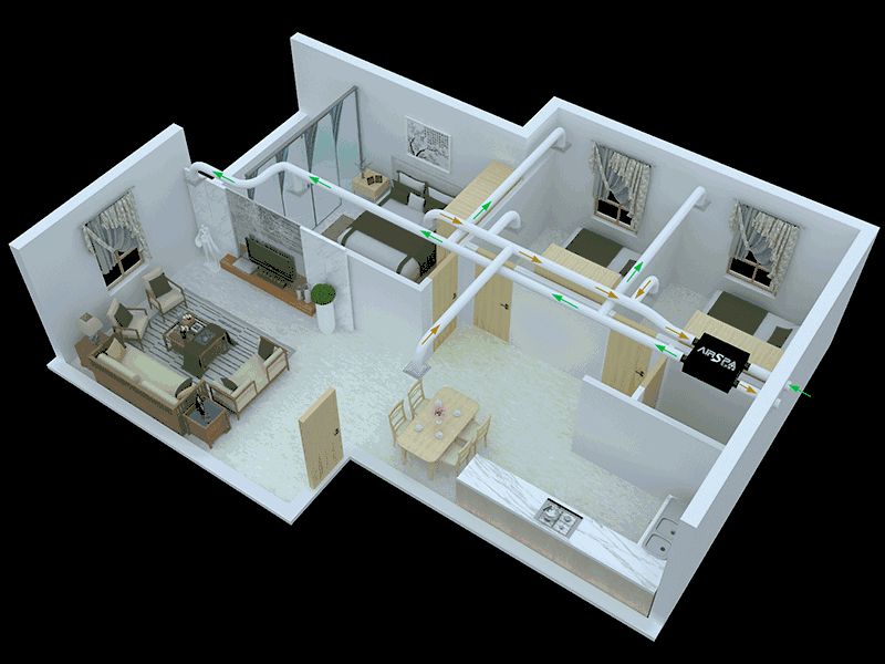 (德國艾爾斯派中央新風(fēng)系統(tǒng)工作原理圖)