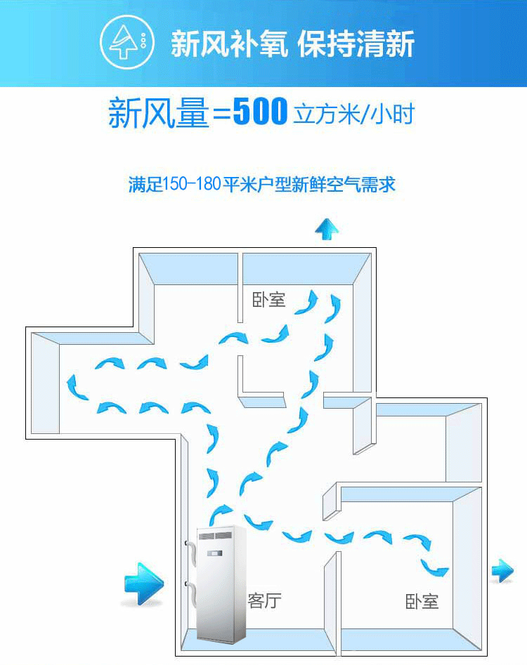 2、新風(fēng)量:500m3/h,尺寸:1620*600*440mm,功率160W;